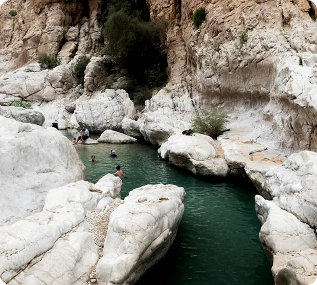 Heute Morgen starten Sie Ihre Rundreise. Sie verlassen die Hauptstadt Maskat und gelangen nach Quriyat, einer kleinen Fischerstadt. Sie besuchen die Wadis Dayqah mit dem gigantischen Staudamm und das Wadi Al Arbeieen. Nach einer ersten Geländefahrt durch diese ausgetrockneten Flussläufe halten Sie beim Bimmah Sinkhole, einem natürlichen Senkloch, und dann geht es weiter zum Wadi Shab, das mit seinen kristallklaren Seen beeindruckt, die zum Schwimmen einladen. Es warten kleine Wasserfälle und geheimnisvollen Höhlen, die erkundet werden können. Dattelpalmen und Olivenbäume zieren das ausgetrocknete Flussbett mit seinen schneeweißen Felswänden.